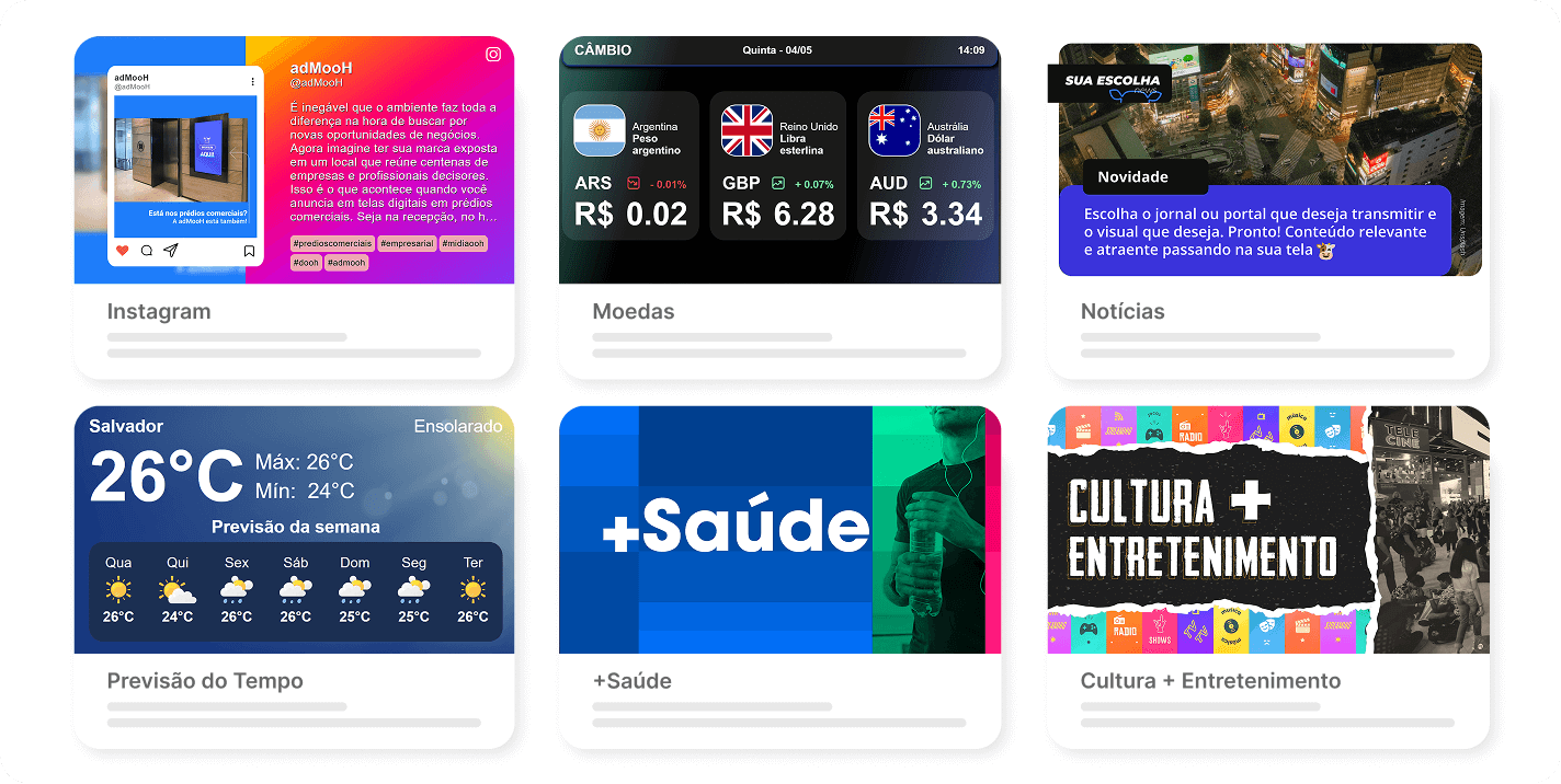 Cada tela pode fazer mais com o adMooH Signage: engajar com conteúdos relevantes, ampliar a presença digital e gerar novas oportunidades de monetização – tudo de forma simples e automatizada.