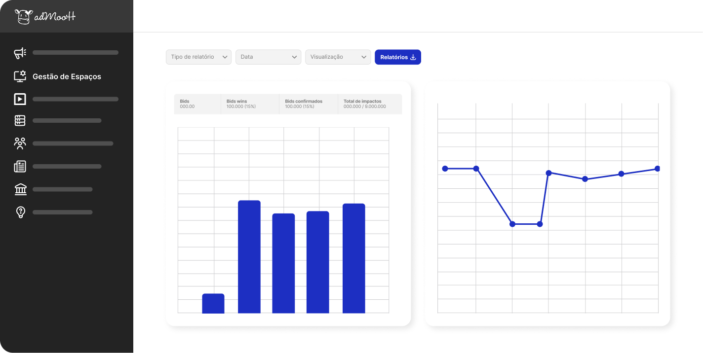 Gere receita de forma automática com anúncios digitais do adMooH Marketplace e leve suas telas para o universo da mídia programática. Tudo integrado, sem necessidade de plataformas externas, para que você aproveite ao máximo cada espaço disponível.