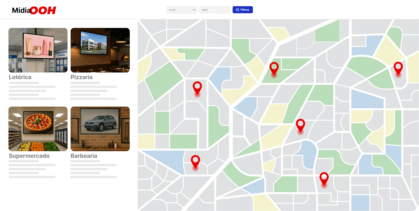 Isso significa que, ao utilizar nosso software, seu veículo DOOH ou rede de mídia indoor passa a fazer parte de um ecossistema com milhares de telas distribuídas por todo o país, disponíveis para anunciantes que utilizam nossa plataforma para veicular campanhas de forma automatizada e segmentada.